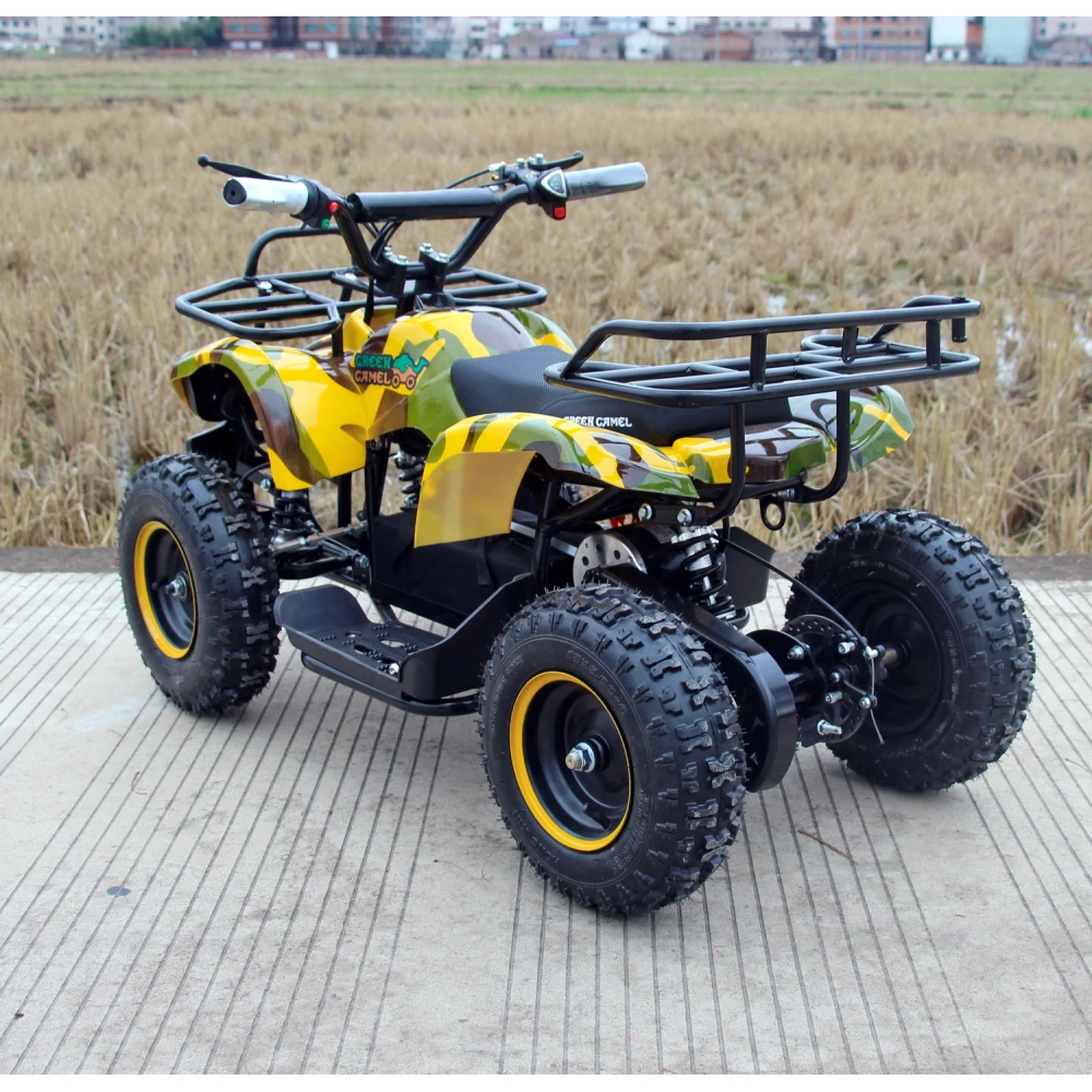 GreenCamel Gobi K200 Армейский желтый – это великолепный квадроцикл подходящий для детей в возрастном диапазоне от трёх до семи лет. Он способен выдержать вес до шестидесяти килограмм. Снабжён дисковыми механическими тормозами, которые установлены на все колёса. GreenCamel Gobi K200 также не страшен дождь – его электроника прекрасно защищена от попадания в неё влаги. Экологически чистый электромтор безопасный для природы и вашего ребёнка, способен разгонять квадроцикл до скорости в 20 км/ч. Подзарядив батарею на сто процентов (потребуется примерно восемь часов) ваш ребёнок сможет проехать на квадроцикле до двадцати километров.