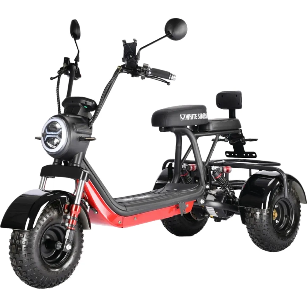 Электроскутер CityCoco WHITE SIBERIA TRIKE MINI 1500W 48V 18Ahмощный трицикл от российского бренда White Siberia. Визуально модель доказывает, подчеркивает силу и назначение. Электроскутер создан для целеустремленных смелых мужчин и женщин, ведущих активный образ жизни, для которых скоростная езда и прогулки на свежем воздухе занимают лидирующие позиции.