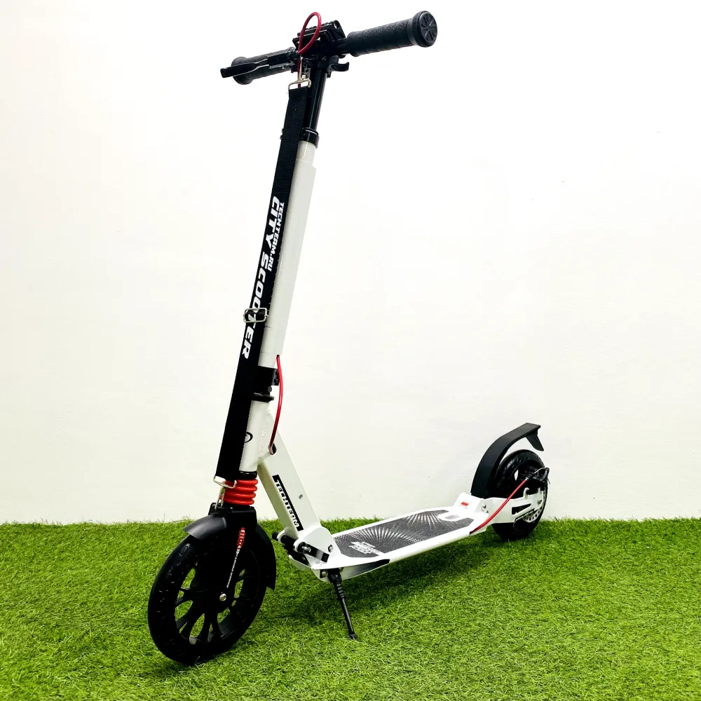 Самокат City scooter Disk Brake white – вариант техники, произведенный в классических белых цветовых оттенках. По техническим параметрам и дизайну подходит девушкам и парням. Облегченная модель весом в 6,1 кг стала хитом продаж этого года. Узнать в чем причина, самостоятельно задать вопросы можно посредством сотрудничества с нашим интернет-магазином. Представленные в каталоге товары – лучшие, качество гарантировано производителем. Приемлемая цена и другие преимущественные характеристики нравятся всем покупателям без исключения.