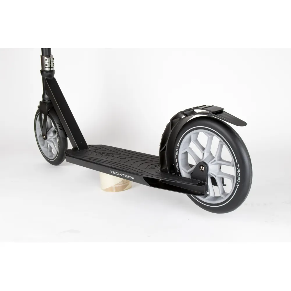 Черно-серый САМОКАТ TROPHY COMPLETE – лучший подарок на мероприятие разного рода. Хит продаж сезона 2021. Завоевал признание пользователей отличными скоростными характеристиками, простотой управления и качественностью технической части.